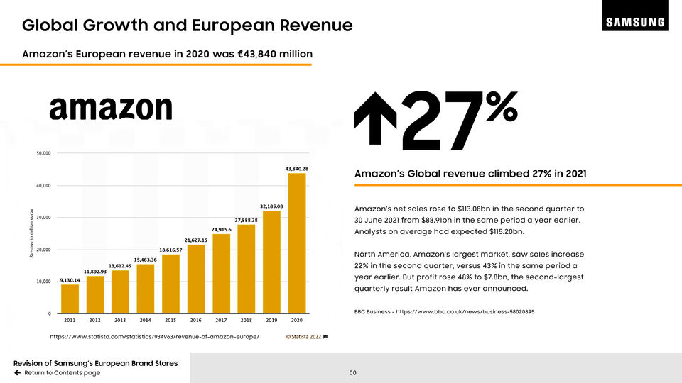 Brand review and revision for Samsung’s five European Amazon Brandstores.
